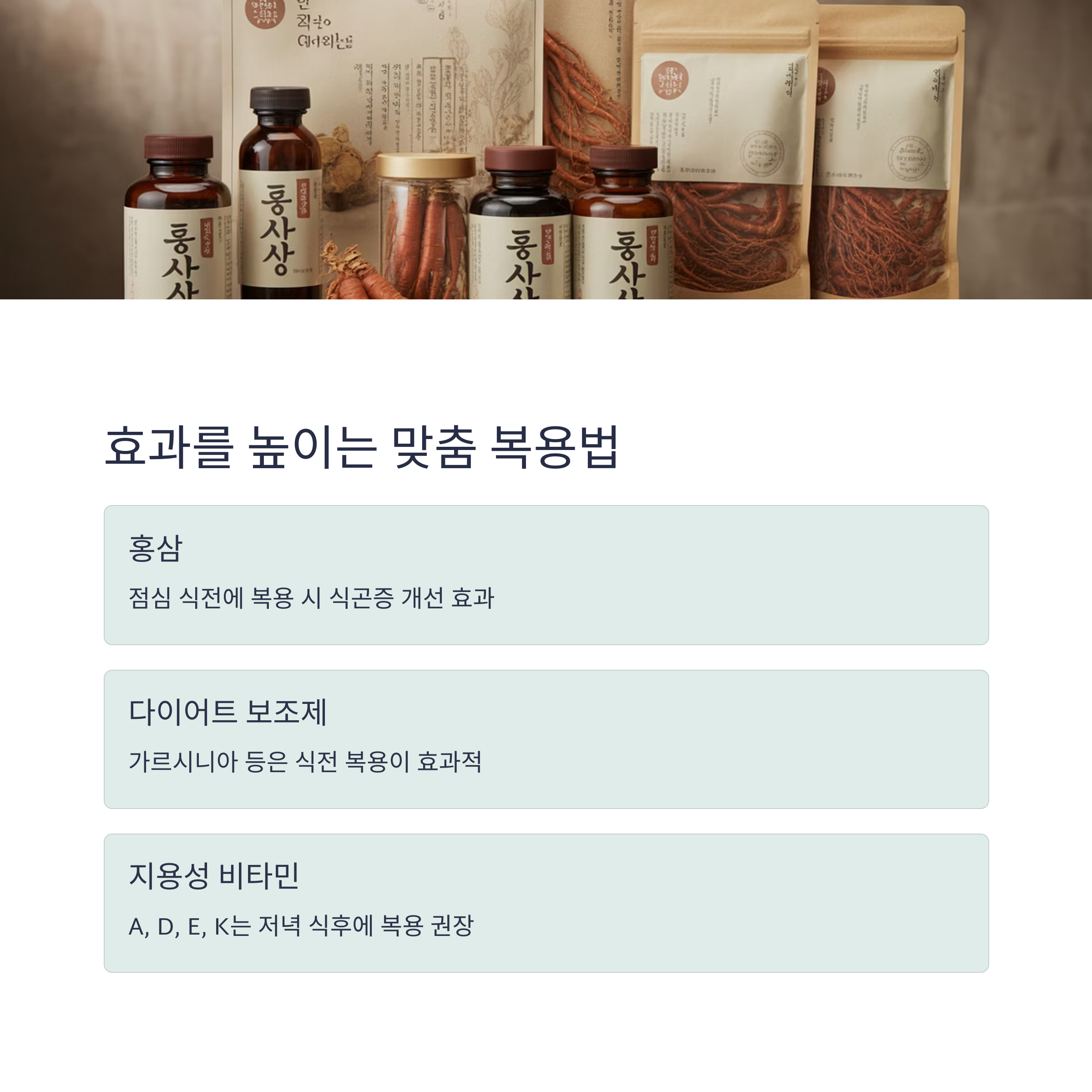 건강보조식품, 영양제, 성분확인, 복용시간, 부작용, 건강관리