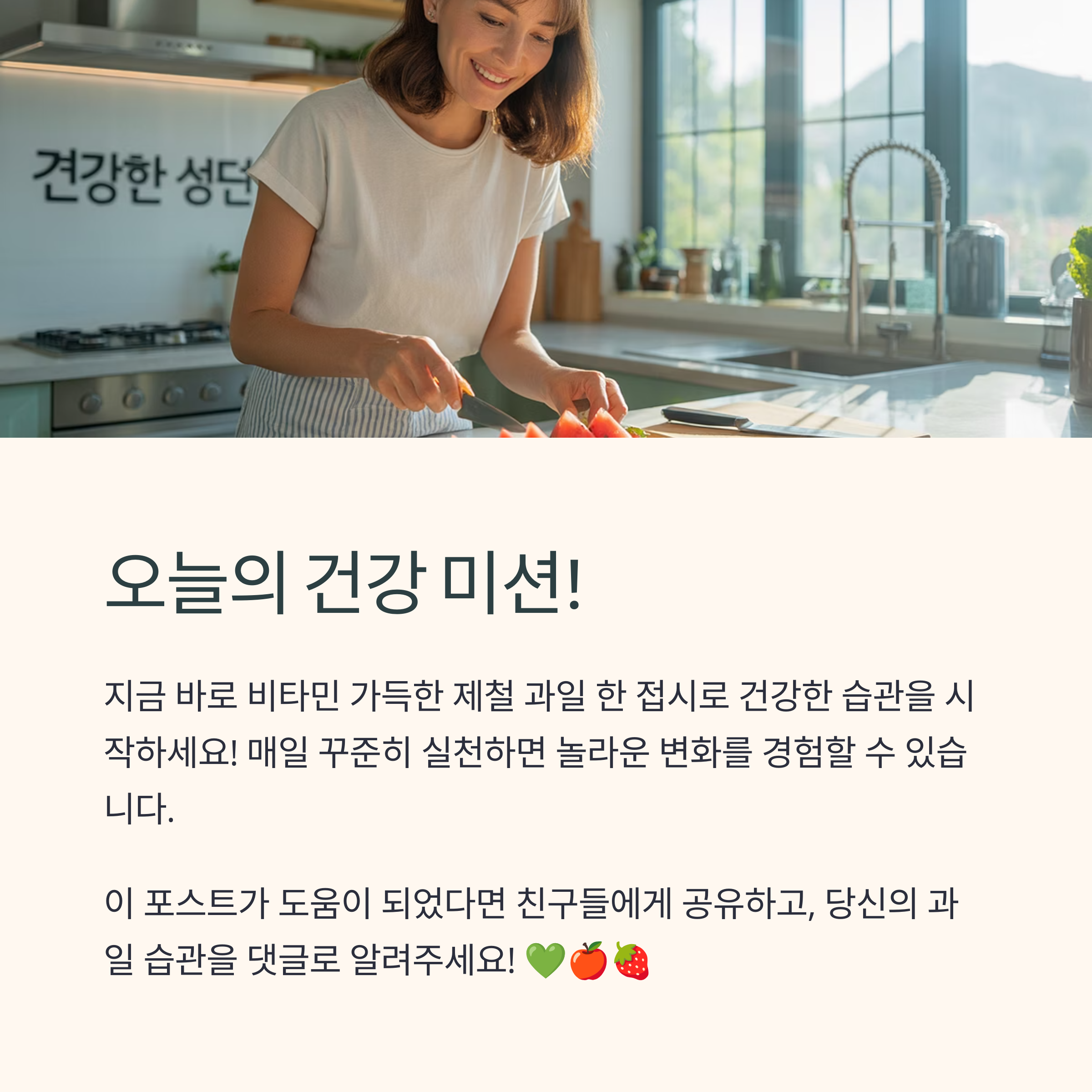 여러분은 어떤 과일을 가장 자주 드시나요? 댓글로 나만의 과일 건강법이나 추천하고 싶은 꿀팁을 공유해 주세요. 함께 나누는 정보가 모두의 건강에 큰 도움이 됩니다!