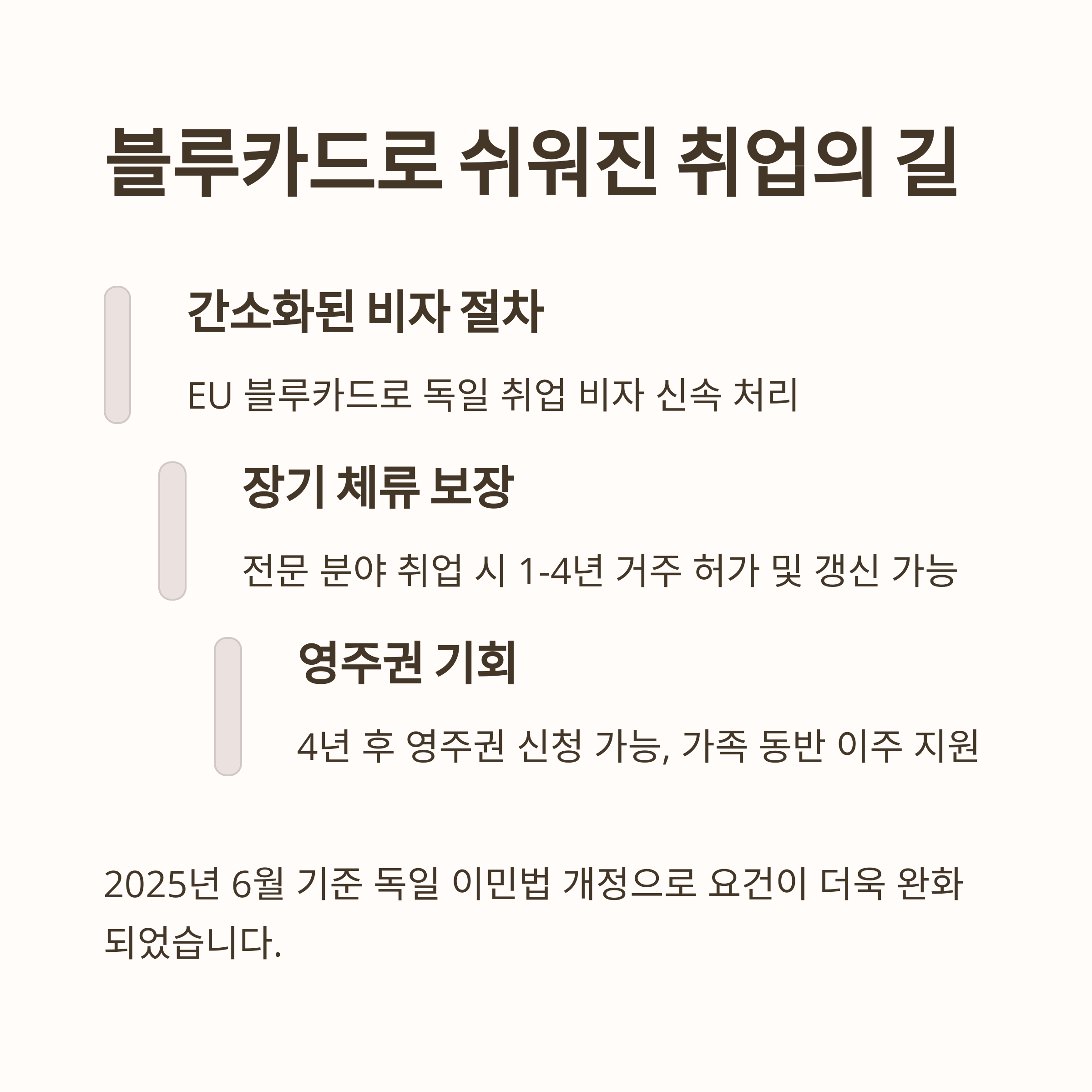 실제로 독일 현지에서 수요가 높은 직종은 IT 개발자, 간호사, 기계 및 전기 기술자, 건축 기술자 등이 있습니다. 이들 직종은 독일 내에서도 채용 공백이 클 뿐 아니라 외국인을 대상으로 한 비자 발급 요건도 완화된 상황입니다. 특히 Blue Card 제도를 통해 일정 수준의 연봉과 자격 조건만 충족하면 비교적 쉽게 취업 및 거주가 가능하다는 장점이 있습니다. 한국에서 관련 자격과 경력을 갖춘 경우, 독일 취업의 진입 장벽이 상당히 낮아진 셈이죠. 이는 실질적인 기회로 이어질 수 있습니다.