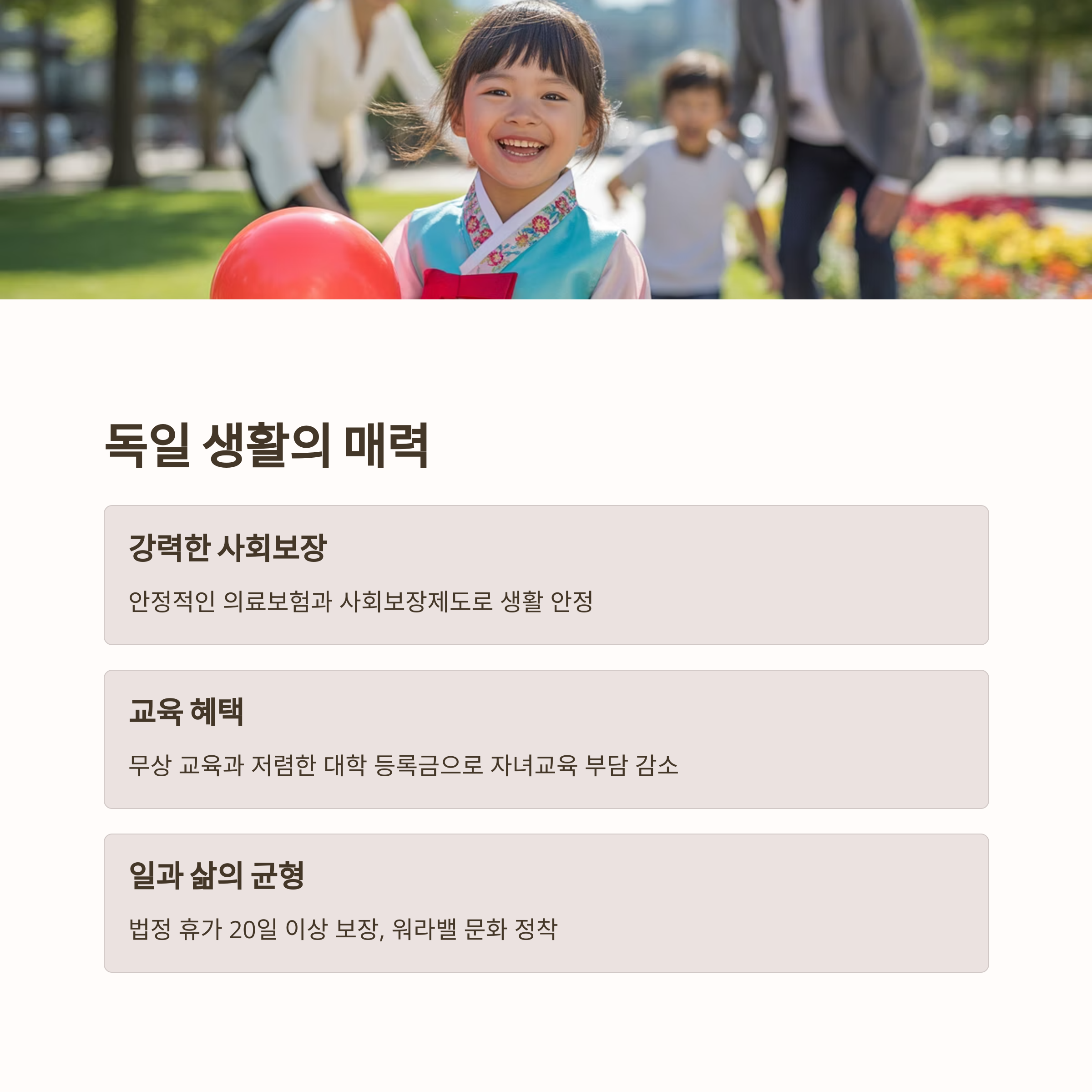 독일에서 한국인이 취업에 유리한 이유는 단순히 기술력 때문만은 아닙니다. 뛰어난 커뮤니케이션 능력과 협업 태도, 위계적 문화에 대한 적응력 등 다방면에서 우수한 평가를 받고 있기 때문이죠. 게다가 독일은 EU 내 최상위 복지국가 중 하나로, 안정적인 삶을 추구하는 이들에게 매우 매력적인 조건을 제공합니다. 따라서 철저한 준비와 자격 조건을 갖추면 실제 이직과 정착까지도 어렵지 않게 이뤄질 수 있습니다.
