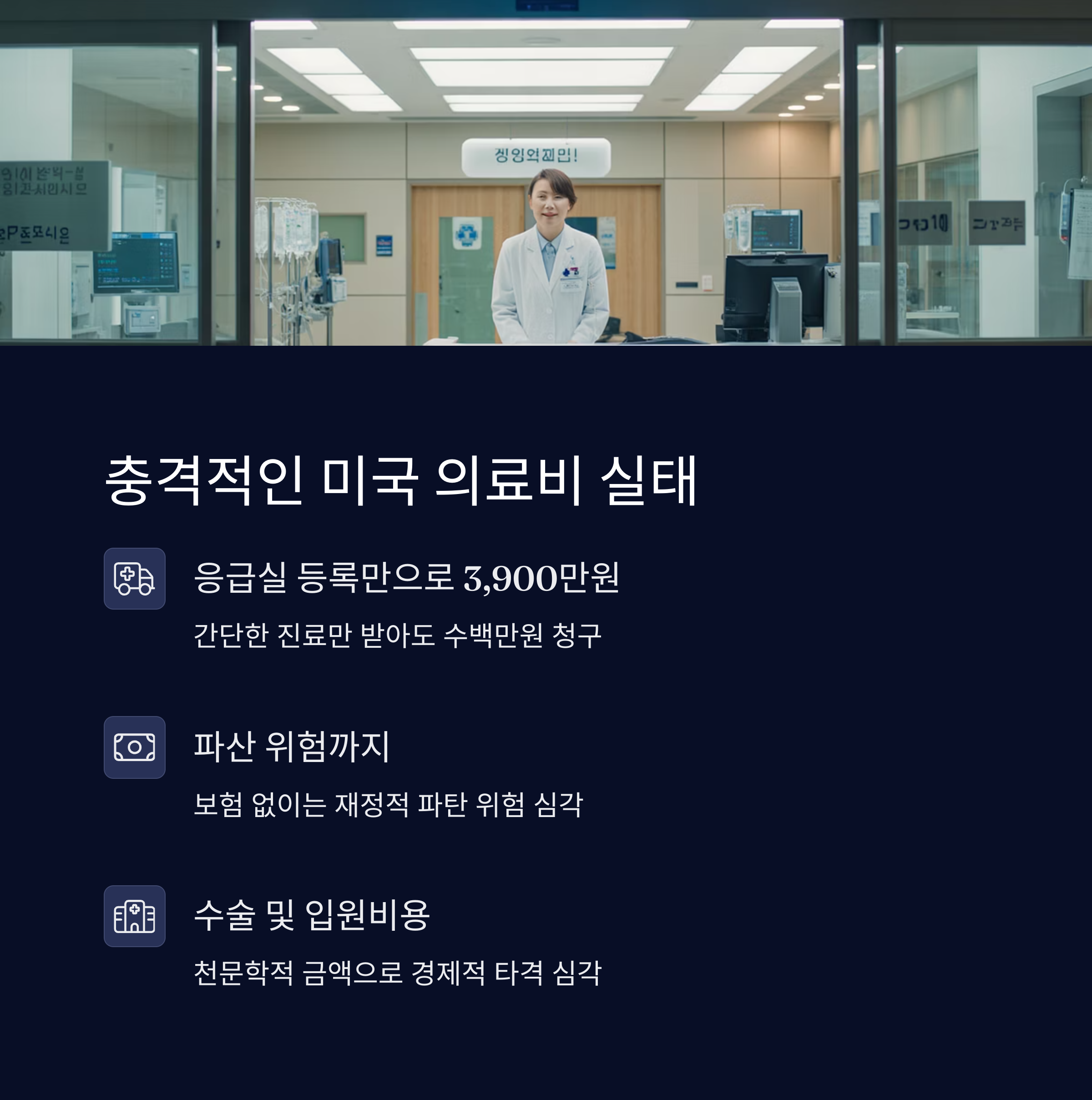 | 미국 병원비 수준 | 간단한 진료도 수백만 원 청구될 수 있음 |