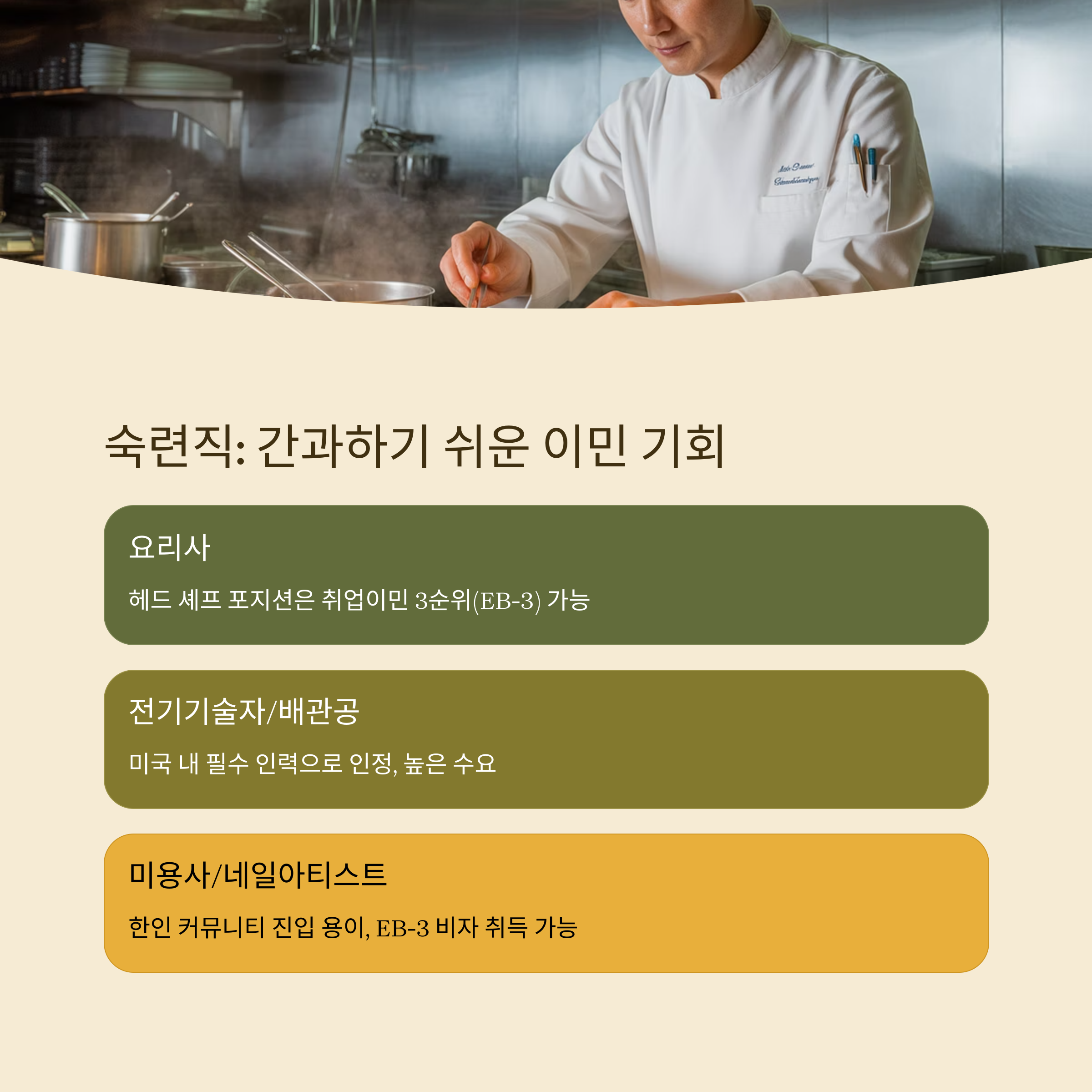 | 미국 이민 직종 | 비자 발급 조건 | 영주권 가능성 |