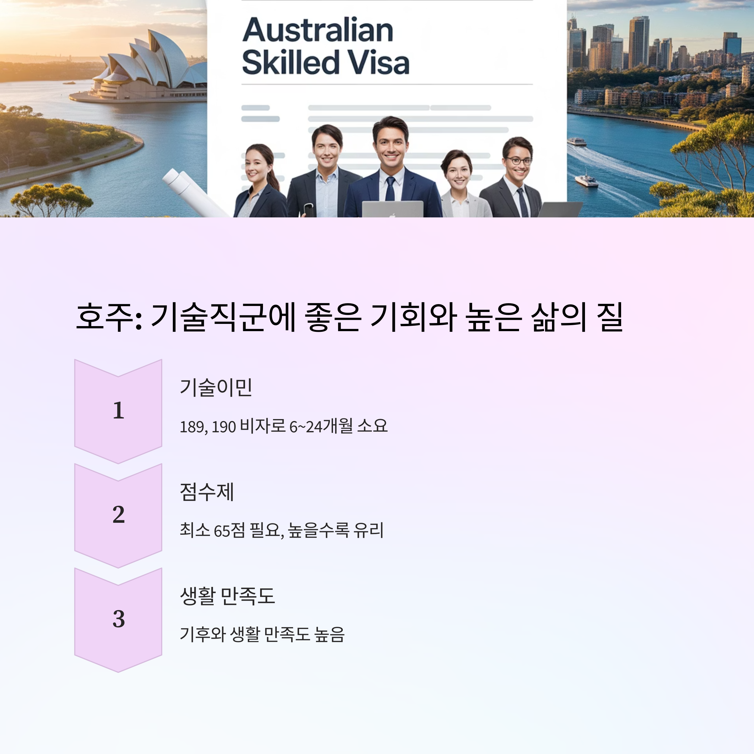 | 직업군 요구사항 | 기술직군은 호주에서 우대, 전문직군은 미국 선호 |