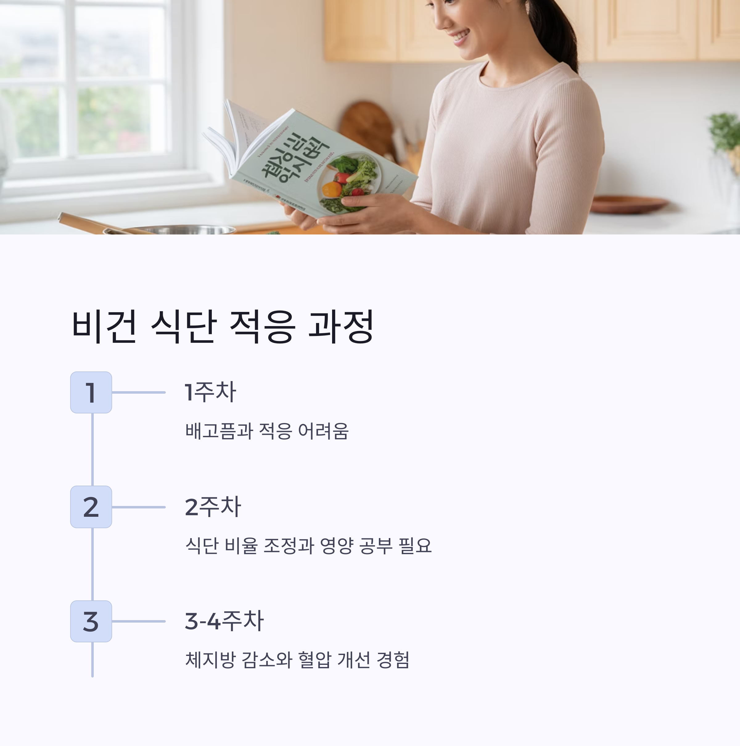 비건 식단은 풍부한 식이섬유 제공 | 콜레스테롤 수치 개선 효과 있음 | 에너지 수준 상승 보고 사례 다수 |