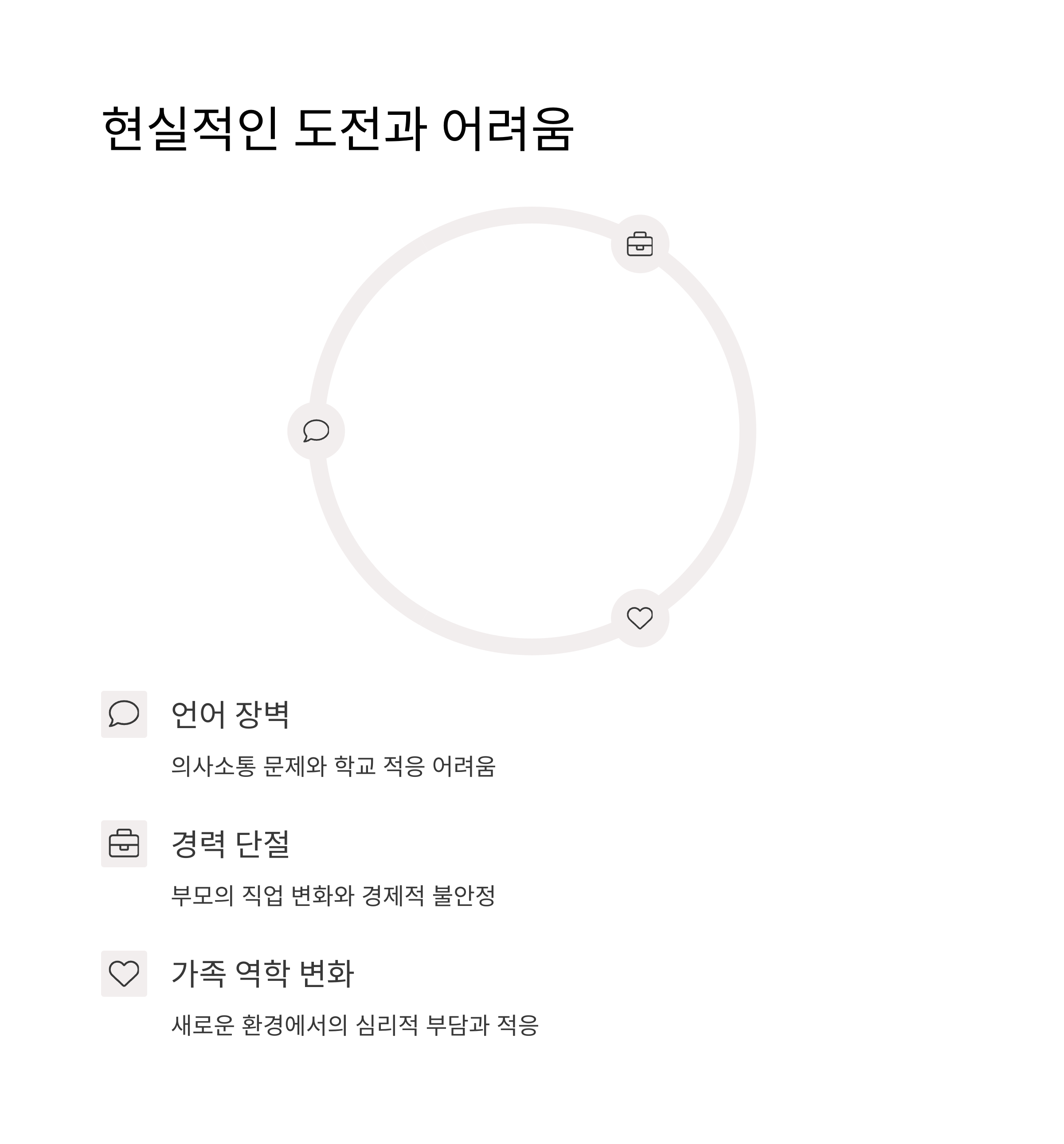 창의적 사고 중심의 해외 교육 방식 | 부모-자녀 간의 안정적 소통 환경 조성 | 언어 및 경력 인정 문제 존재 |
