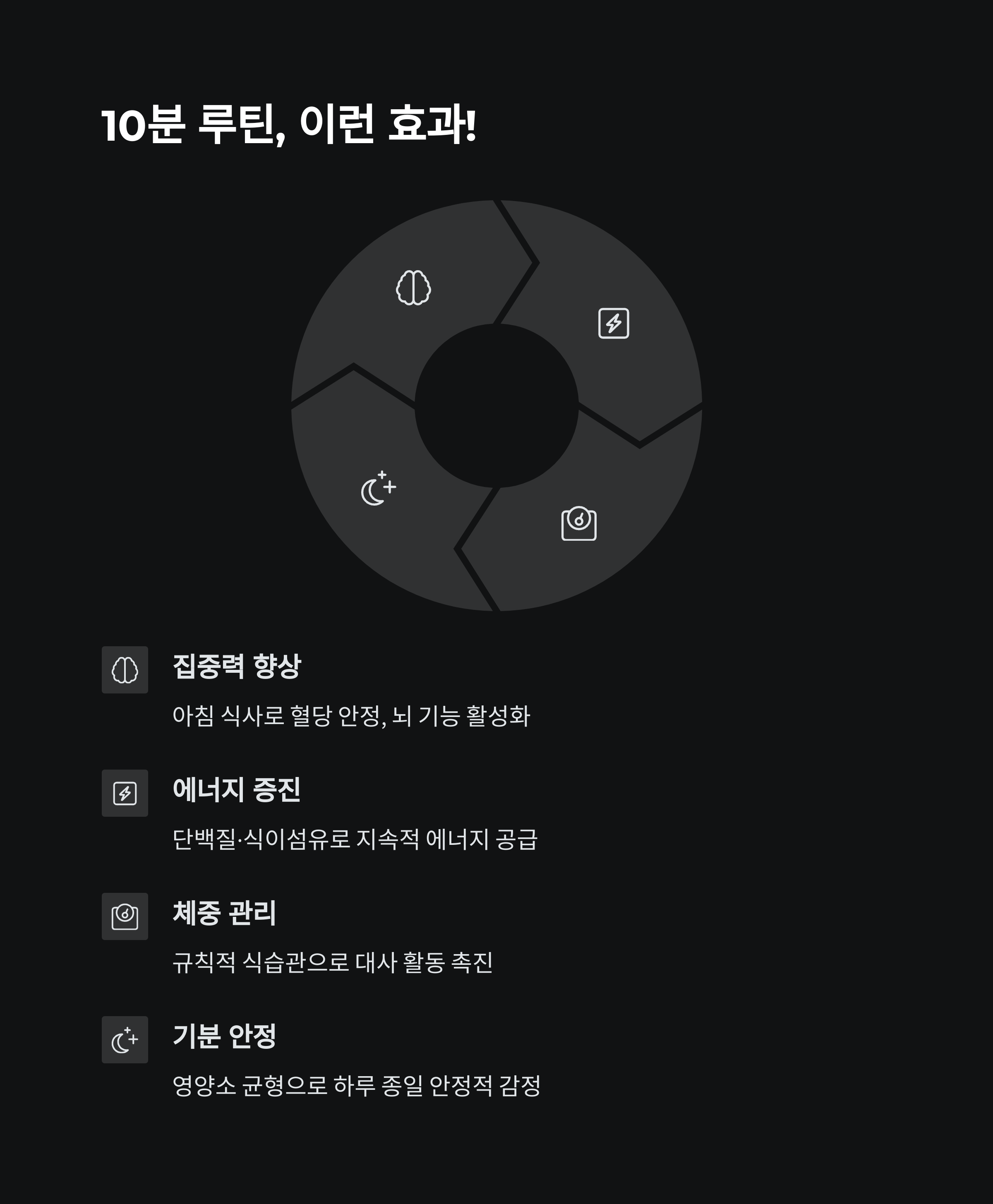 아침 식사의 중요성 | 하루 에너지와 집중력을 좌우하는 핵심 요소입니다. |