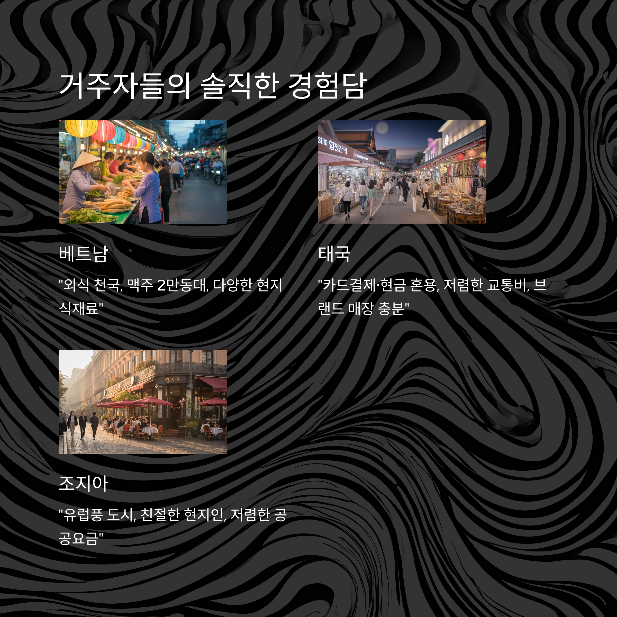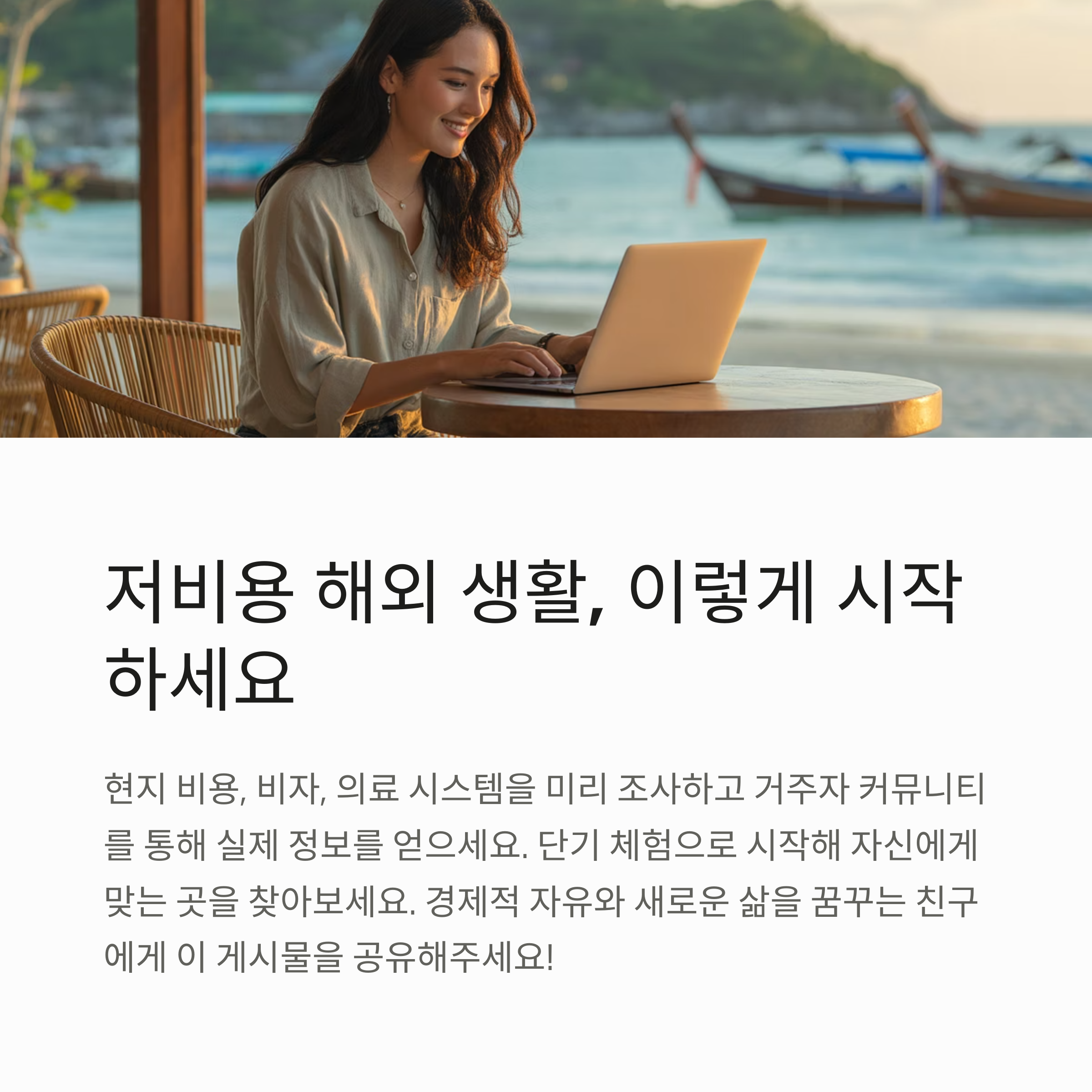 | 해외에서의 저렴한 생활비 | 동남아, 동유럽 등에서 월 50만원도 충분합니다 |
