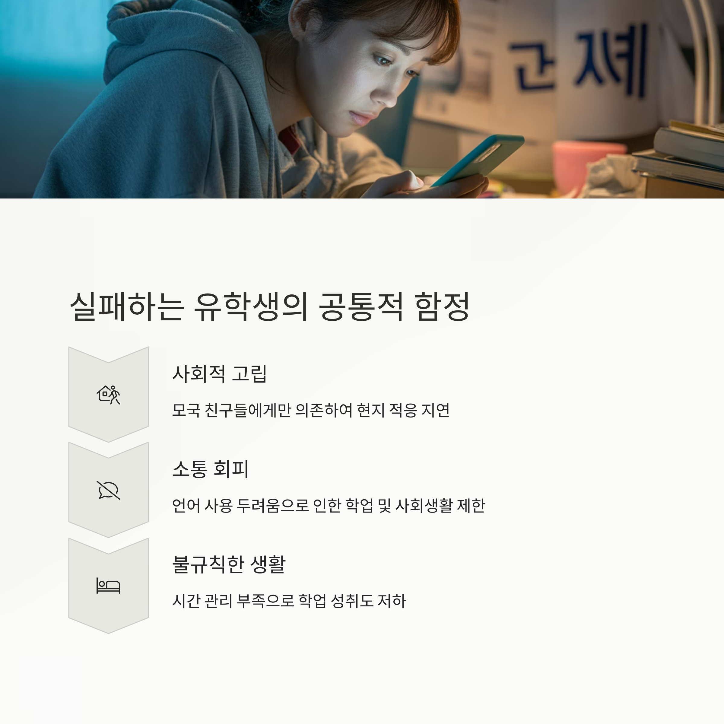 | 유학 실패 실수 | 언어 미흡 방치, 고립 생활, 단기적인 시야 |