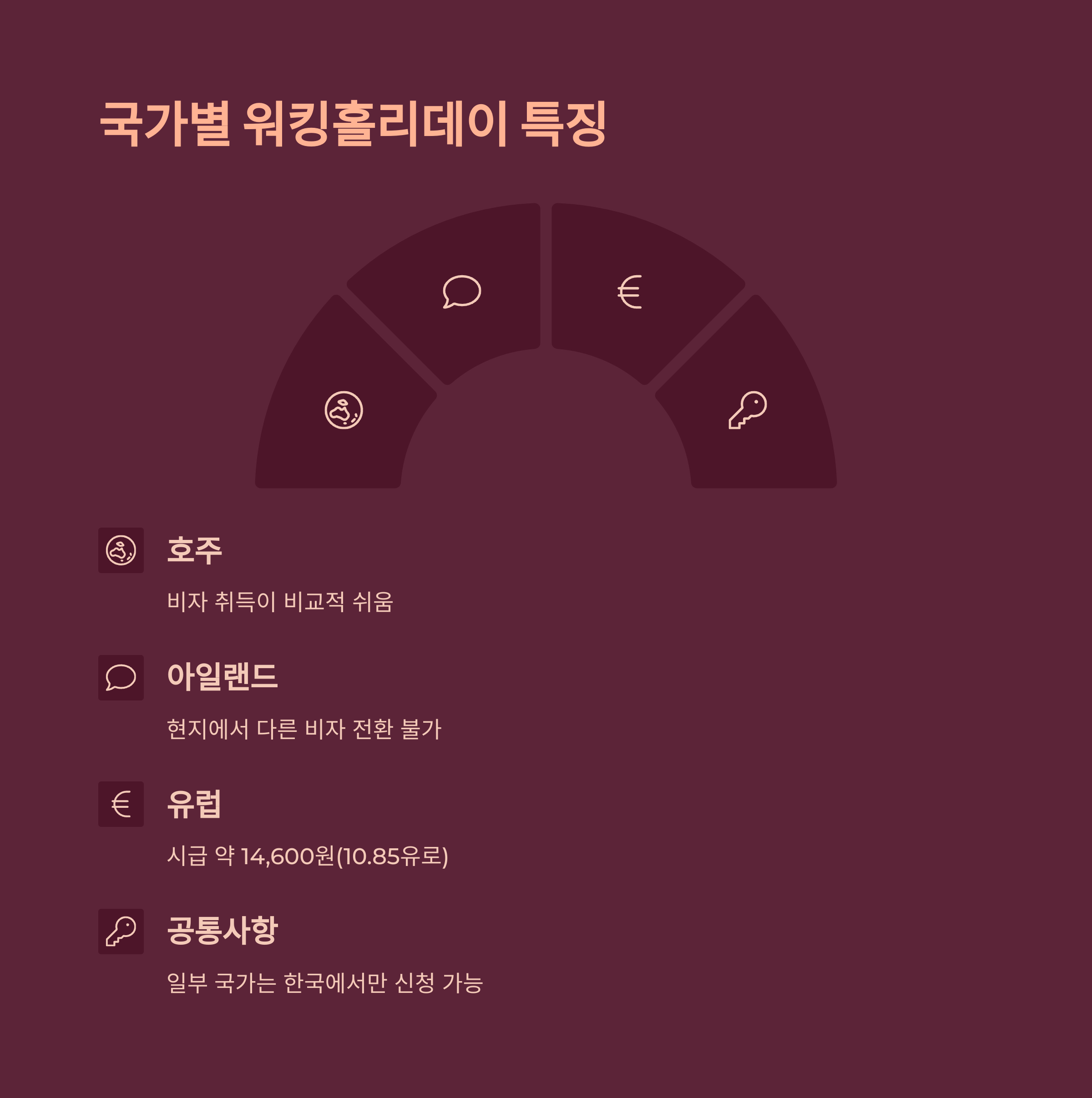 | 문화 경험 및 자율 체류 중심 | 6개월~1년, 연장 어려움 | 초기 자금 부담 낮음 |