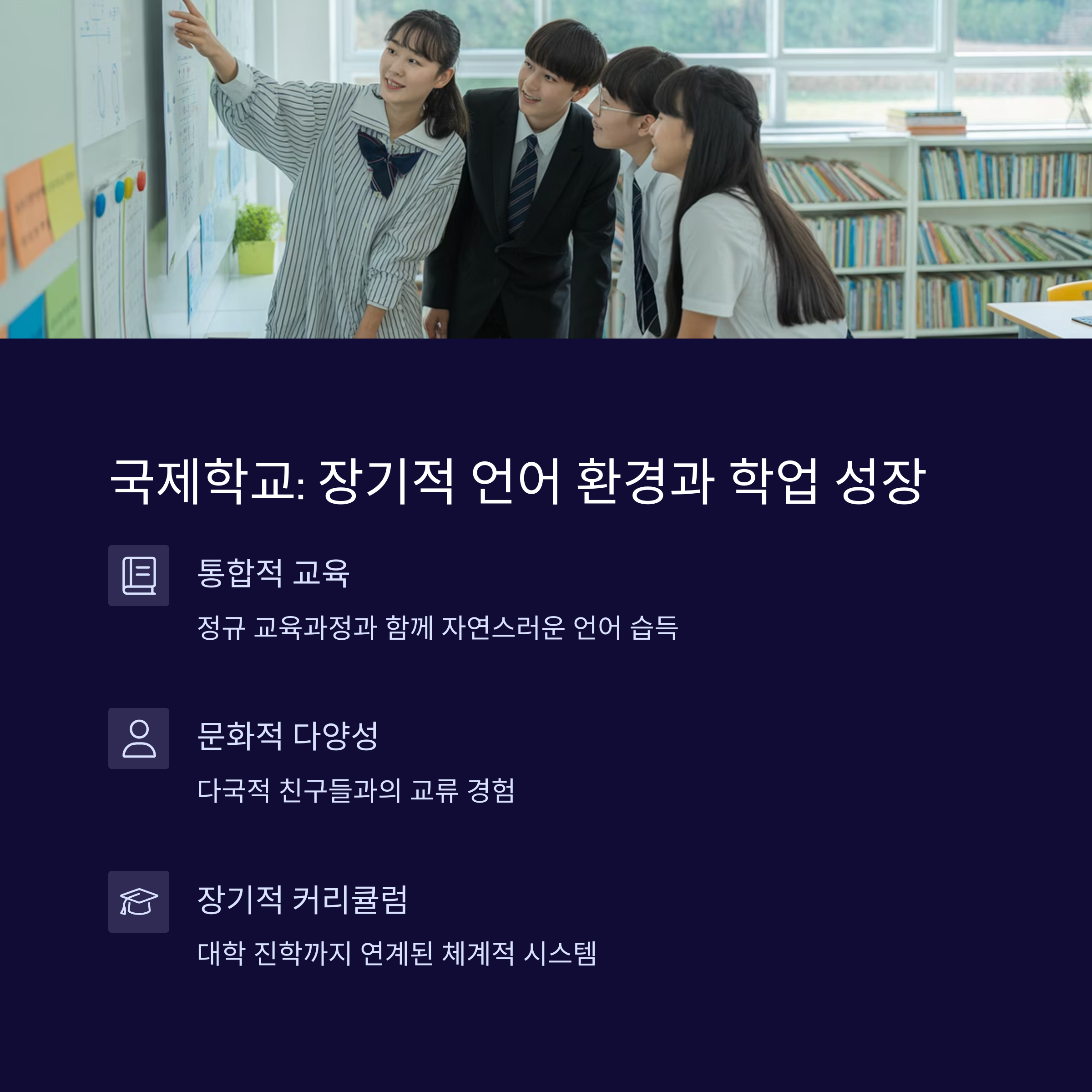 국제학교란? 국내 또는 해외에서 외국 커리큘럼으로 운영되는 학교입니다.