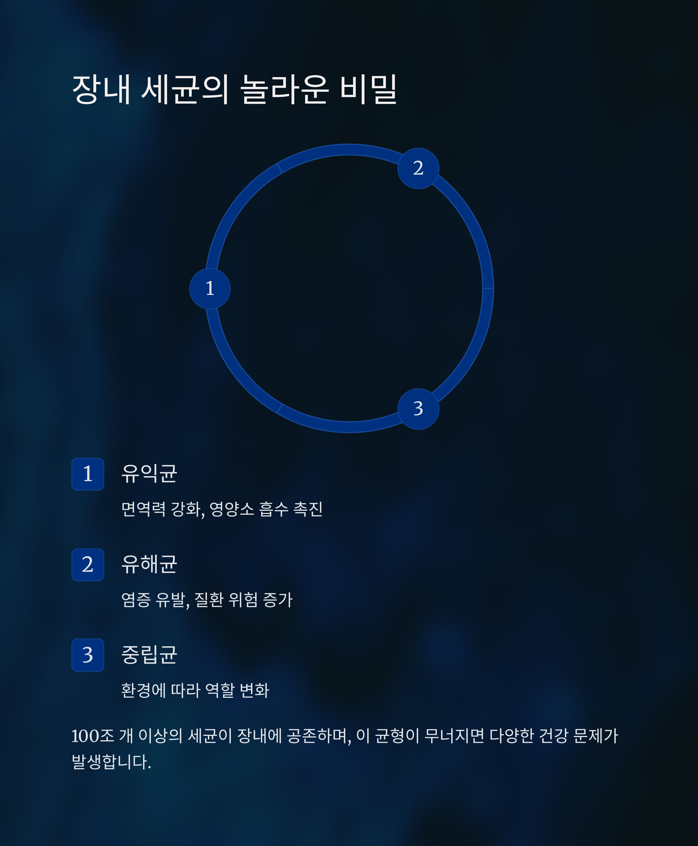 장내 세균 우리 몸속 미생물로 건강 상태를 알려줍니다.