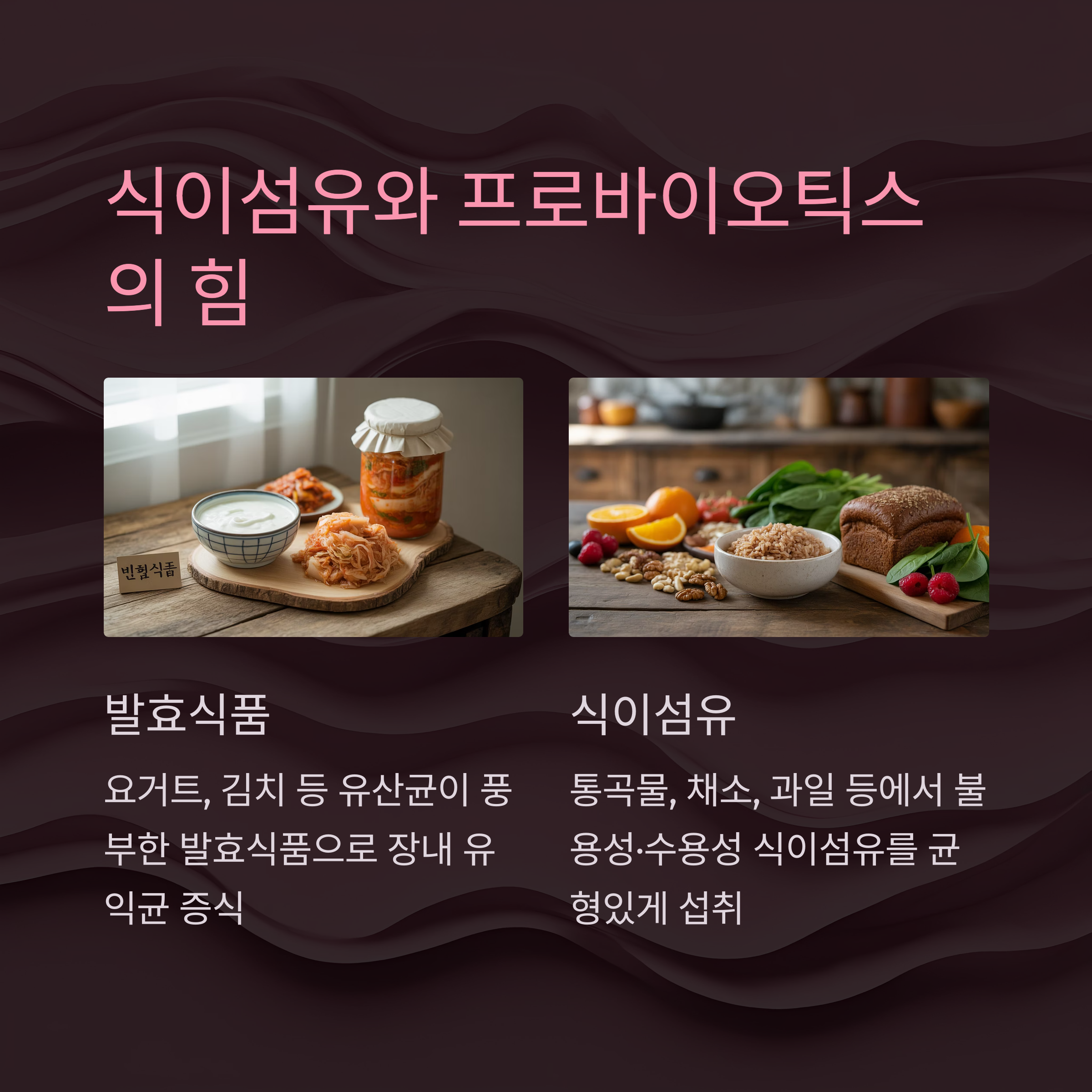 두 번째로 강조하고 싶은 것은 장 내 유익균 환경을 조성하는 것입니다. 프로바이오틱스와 프리바이오틱스를 포함한 식품은 장내 환경을 건강하게 유지하는 데 탁월한 효과가 있어요. 요거트, 김치, 된장처럼 발효식품은 좋은 박테리아를 공급하고 귀리, 바나나, 아스파라거스 같은 식이섬유는 유익균의 먹이가 되어 장 건강을 유지하는 데 도움을 줍니다. 장 트러블이 자주 발생한다면 이러한 음식을 일상에 꾸준히 포함시키는 습관이 필요합니다. 하루 중 간식이나 식사 대용으로 자연스럽게 프로바이오틱스를 섭취할 수 있도록 루틴을 만들면 변화를 체감하실 수 있을 거예요.