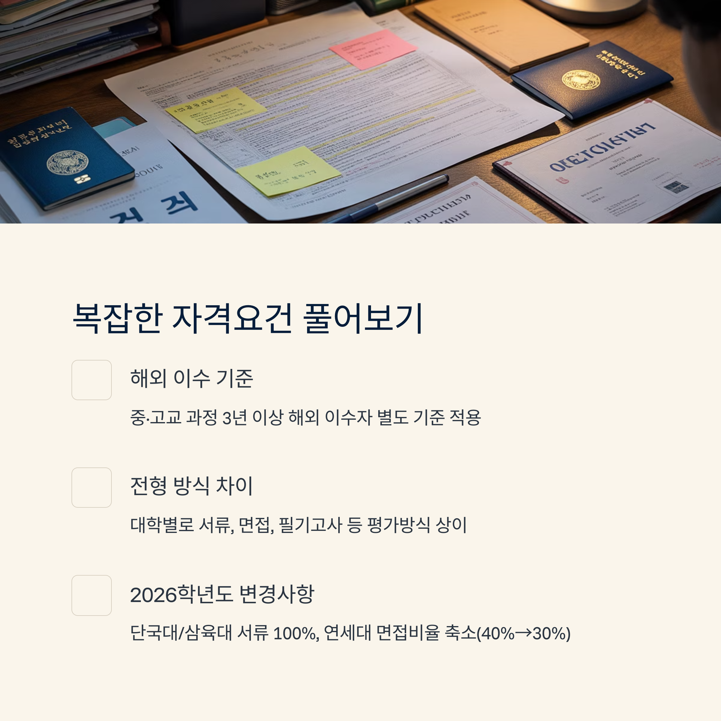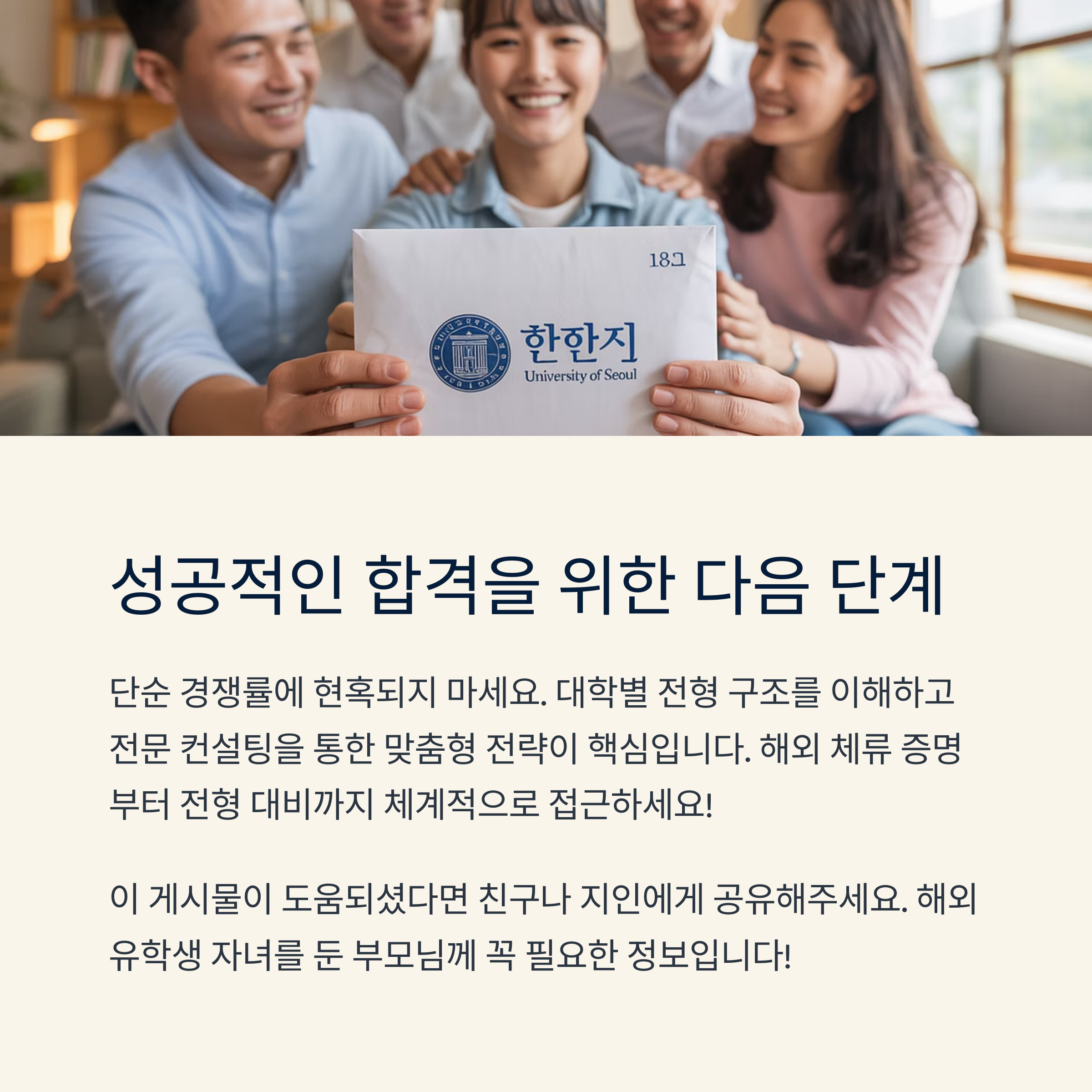 최근 몇 년간 재외국민특별전형이라는 단어가 입시 준비생과 학부모들 사이에서 화제가 되고 있습니다. 특히 '합격률 90%'라는 말은 누구나 귀가 솔깃할 수밖에 없습니다. 하지만 이 높은 수치 속에는 어떤 현실과 착시가 숨겨져 있을까요? 진짜 경쟁률은 어떤지, 그리고 실제 지원자들이 겪는 어려움은 무엇인지 궁금하지 않으셨나요? 단순히 통계 수치만으로 판단하면 자칫 큰 함정에 빠질 수 있습니다. 오늘 이 글에서는 재외국민전형의 구조를 상세히 살펴보고, 실제 준비 과정에서 마주하는 진실과 피해야 할 오해들을 친절하게 정리해 드리겠습니다. 정확한 정보를 바탕으로 전략적으로 접근하는 것이 합격의 첫걸음이라는 사실, 꼭 기억해주세요.
