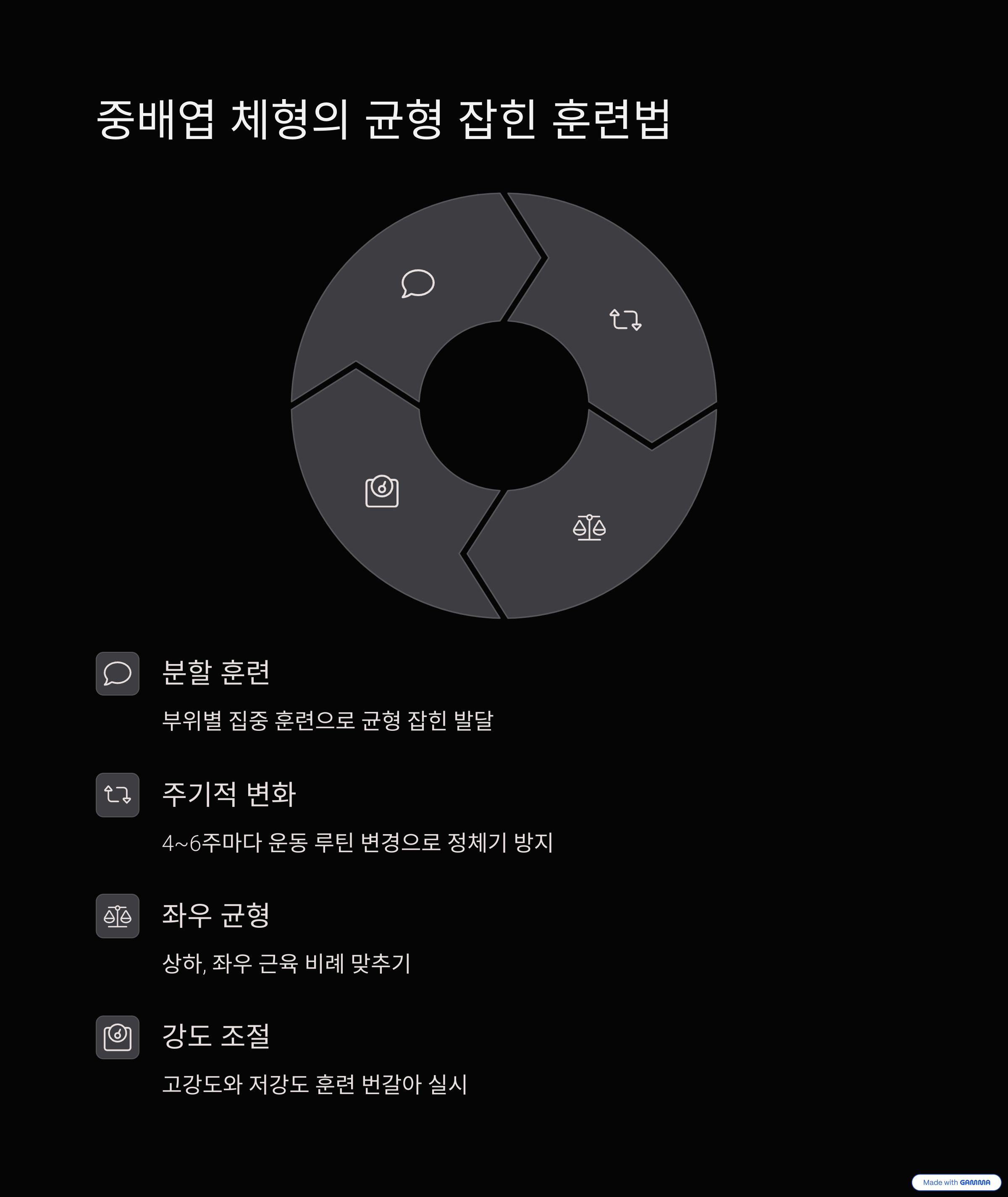 | 근력 중심 훈련, 고단백 식사 추천 | 분할 루틴 활용, 주기적 변형 권장 | 유산소 운동 강화, 식이 조절 병행 |
