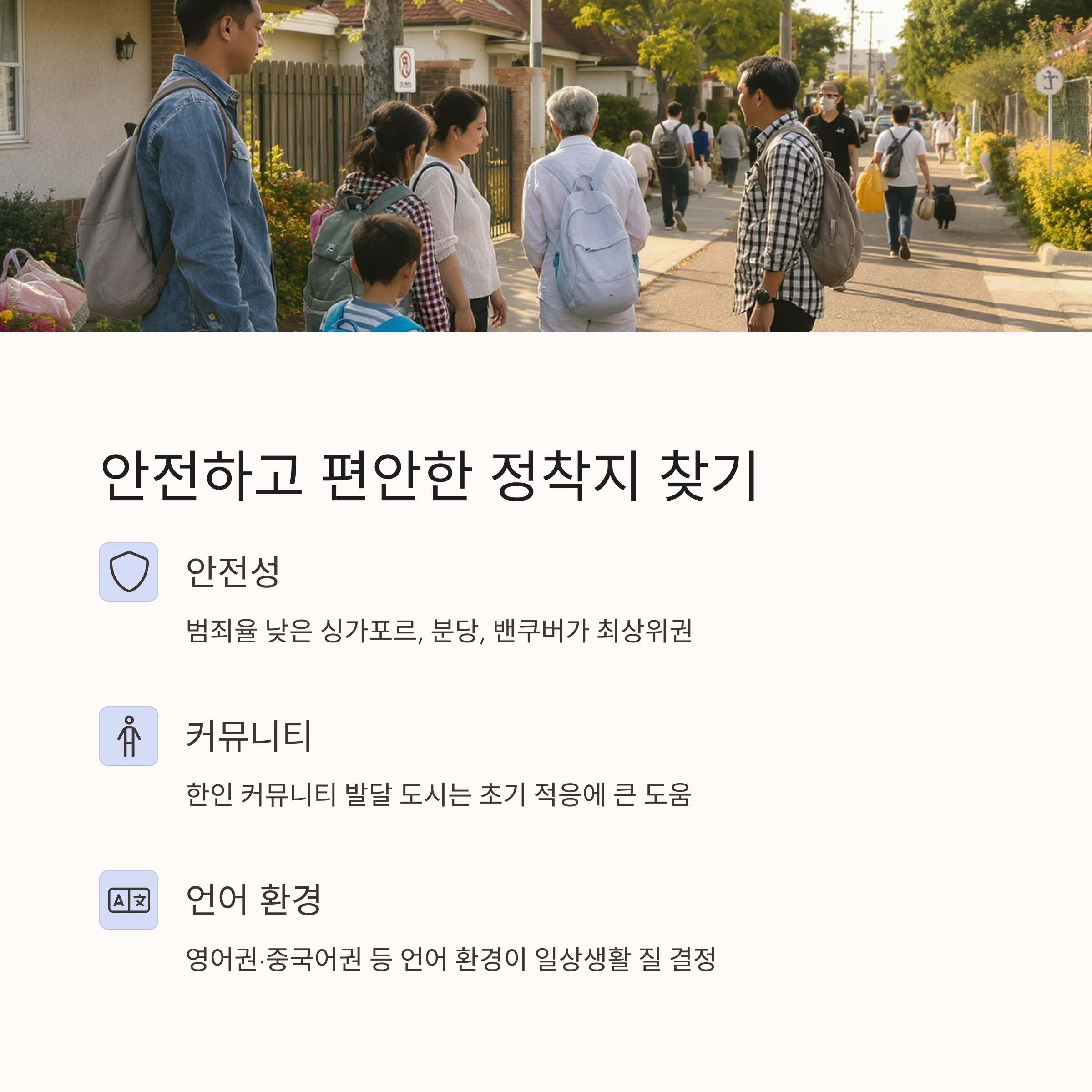 이민도시추천, 정착가이드, 이민생활, 도시선택전략, 이민준비, 가족이민