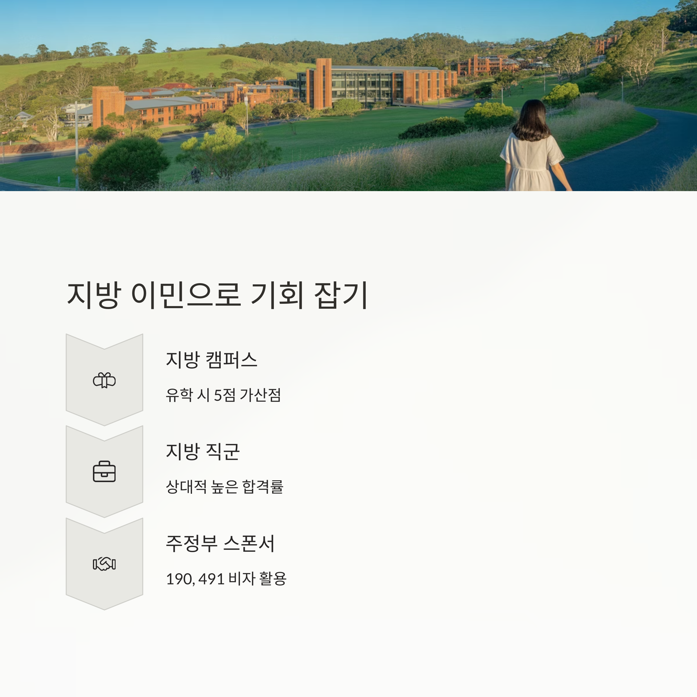 기술 이민 점수 상향, 경쟁 심화 | 일부 전공군 제외로 선택 폭 축소 | 지방 거주 및 취업 시 우대 적용 |