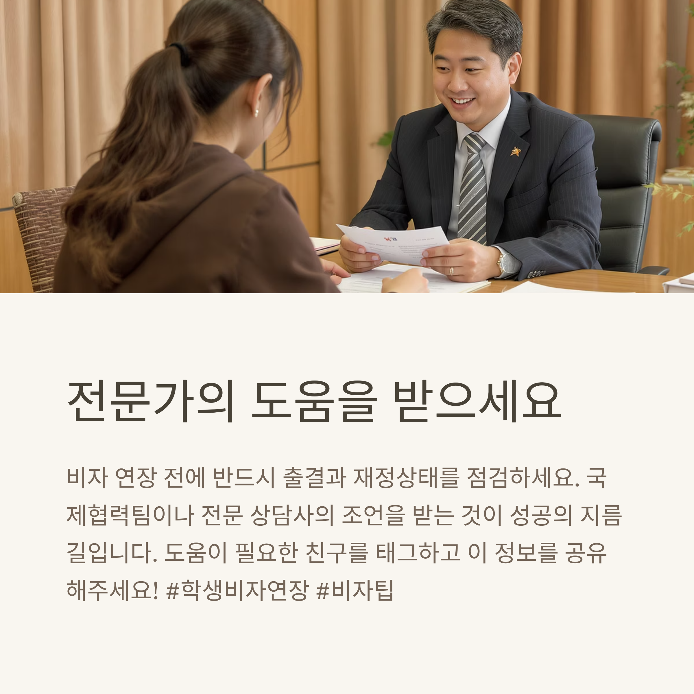 학생비자 연장은 단순한 연장이 아니라, 유학 생활의 연속성을 결정짓는 중요한 절차입니다. 사소해 보이는 항목 하나가 심사관에게는 중대한 판단 요소가 될 수 있다는 점을 항상 명심해야 하며, 꼼꼼하고 전략적인 준비가 필요합니다. 실제로 많은 학생들이 정보 부족으로 인해 거절당한 후에야 문제점을 깨닫고, 큰 심적 부담을 겪게 됩니다. 오늘 소개한 출결률, 재정 증빙, 허위 정보는 가장 빈번하게 발생하는 사유이며, 이를 예방하기 위해서는 준비 초기 단계에서부터 전문가의 도움을 받는 것이 좋습니다. 유학이라는 소중한 시간을 헛되이 보내지 않기 위해서라도 지금 이 순간, 자신의 상태를 점검해 보시기 바랍니다. 체계적인 준비가 성공적인 유학 생활로 이어지는 지름길입니다.